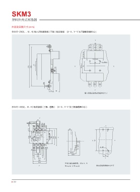 SKM3-250(L 、M、H) 插入式板前接线 ( 三极 ) 板后接线 (X-X、Y-Y 为三极断路器中心 )