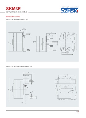 SKM3E 深圳三开电气 sankai electric 电子式塑料外壳式断路器 外形及安装尺寸 (mm) SKM3E-250 板后接线安装板开孔尺寸 . . . f f SKM3E-250 插入式板后接线安装板开孔尺寸 ٽ ʻ ʻ . ٽ f . 062