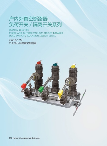 户内外真空断路器 负荷开关 / 隔离开关系列 WANKAI ELECTRIC INSIDE AND OUTSIDE VACUUM CIRCUIT BREAKER LOAD SWITCH / ISOLATION SWITCH SERIES ZW32-12M 户外高压永磁真空断路器 119 / www.zhongguowankai.com