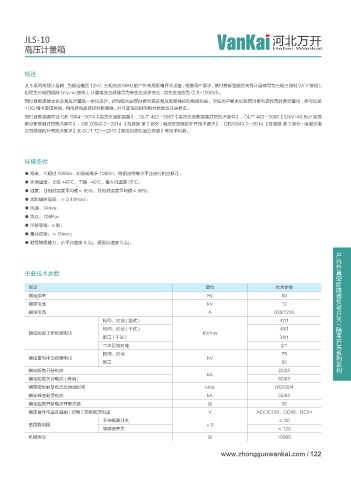 JLS 系列高压计量箱 , 为额定电压 12kV、三相交流 50Hz 的户外高压配电开关设备。根据用户要求 , 预付费断路器的高压计量箱可为三相三线制 (V/ V 接线 ),