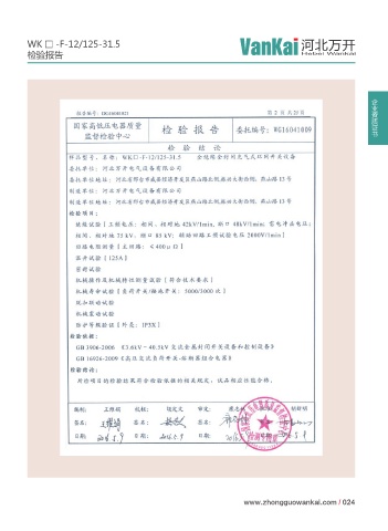 WK □ -F-12/125-31.5 河北万开 检验报告 Hebei Wankai 企业资质证书 www.zhongguowankai.com / 024
