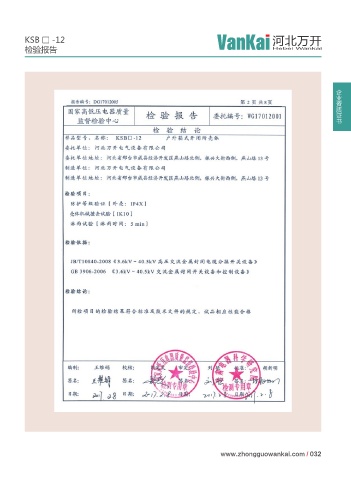 KSB □ -12 河北万开 检验报告 Hebei Wankai 企业资质证书 www.zhongguowankai.com / 032