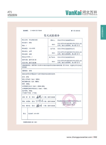 ATS 河北万开 试验报告 Hebei Wankai 企业资质证书 www.zhongguowankai.com / 052