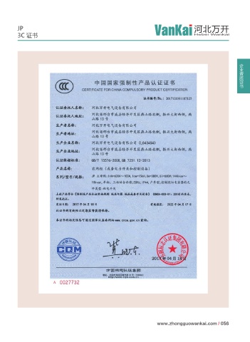JP 河北万开 3C 证书 Hebei Wankai 企业资质证书 www.zhongguowankai.com / 056