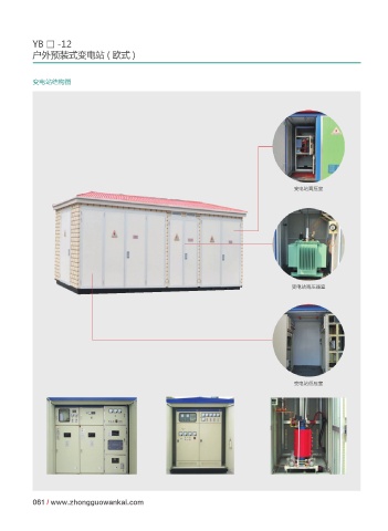 YB □ -12 户外预装式变电站 ( 欧式 ) 变电站结构图 变电站高压室 变电站高压器室 变电站低压室 061 / www.zhongguowankai.com