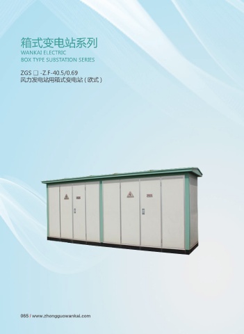 箱式变电站系列 WANKAI ELECTRIC BOX TYPE SUBSTATION SERIES ZGS □ -Z.F-40.5/0.69 风力发电站用箱式变电站 ( 欧式 ) 065 / www.zhongguowankai.com