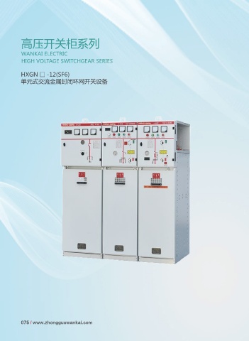 高压开关柜系列 WANKAI ELECTRIC HIGH VOLTAGE SWITCHGEAR SERIES HXGN □ -12(SF6) 单元式交流金属封闭环网开关设备 075 / www.zhongguowankai.com