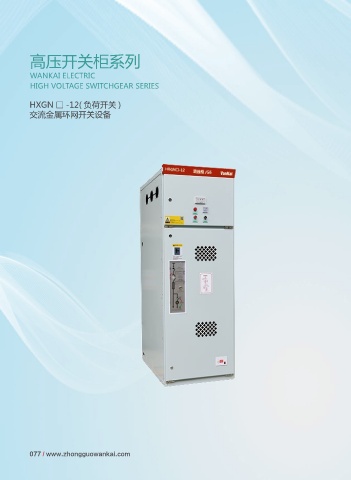 高压开关柜系列 WANKAI ELECTRIC HIGH VOLTAGE SWITCHGEAR SERIES HXGN □ -12( 负荷开关 ) 交流金属环网开关设备 077 / www.zhongguowankai.com