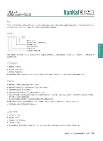TBBZ-12 系列高压无功自动补偿装置根据 6kV、10kV 供电母线的电网及负荷状况,通过控制系统电容器组自动跟踪投切,进行无功功率自动跟踪补偿,